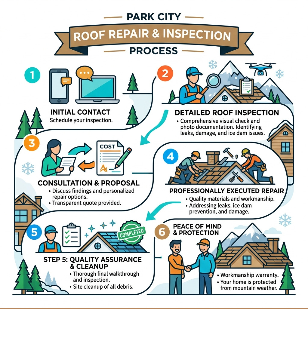 Infographic showing the Park City roof repair and inspection process step by step - park city roof repair infographic